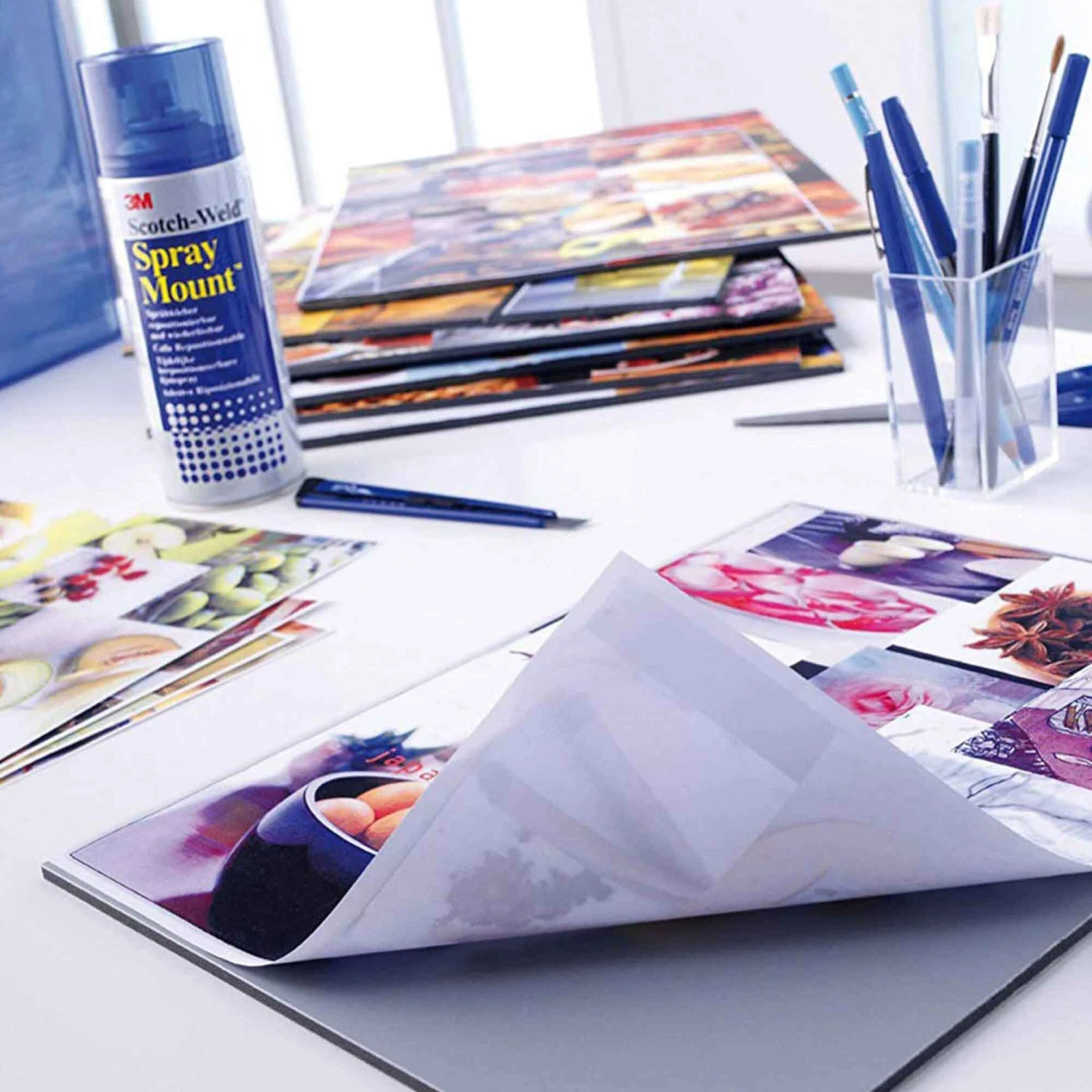 3M SprayMount™ Adhesive is extensively used in the Art and Design market for mounting work for client presentation. Provides excellent initial adhesion yet allows work to be temporarily lifted and repositioned. SprayMount™ offers a clear and permanent bond and is safe for colour photos, illustrations, maps and more. It is acid-free and photo safe. Ideal for presentations, creating mock-ups, photo memory boards, display boards, school projects, graphic designs, and more.  Fast, convenient and reliable. Clear, non staining.