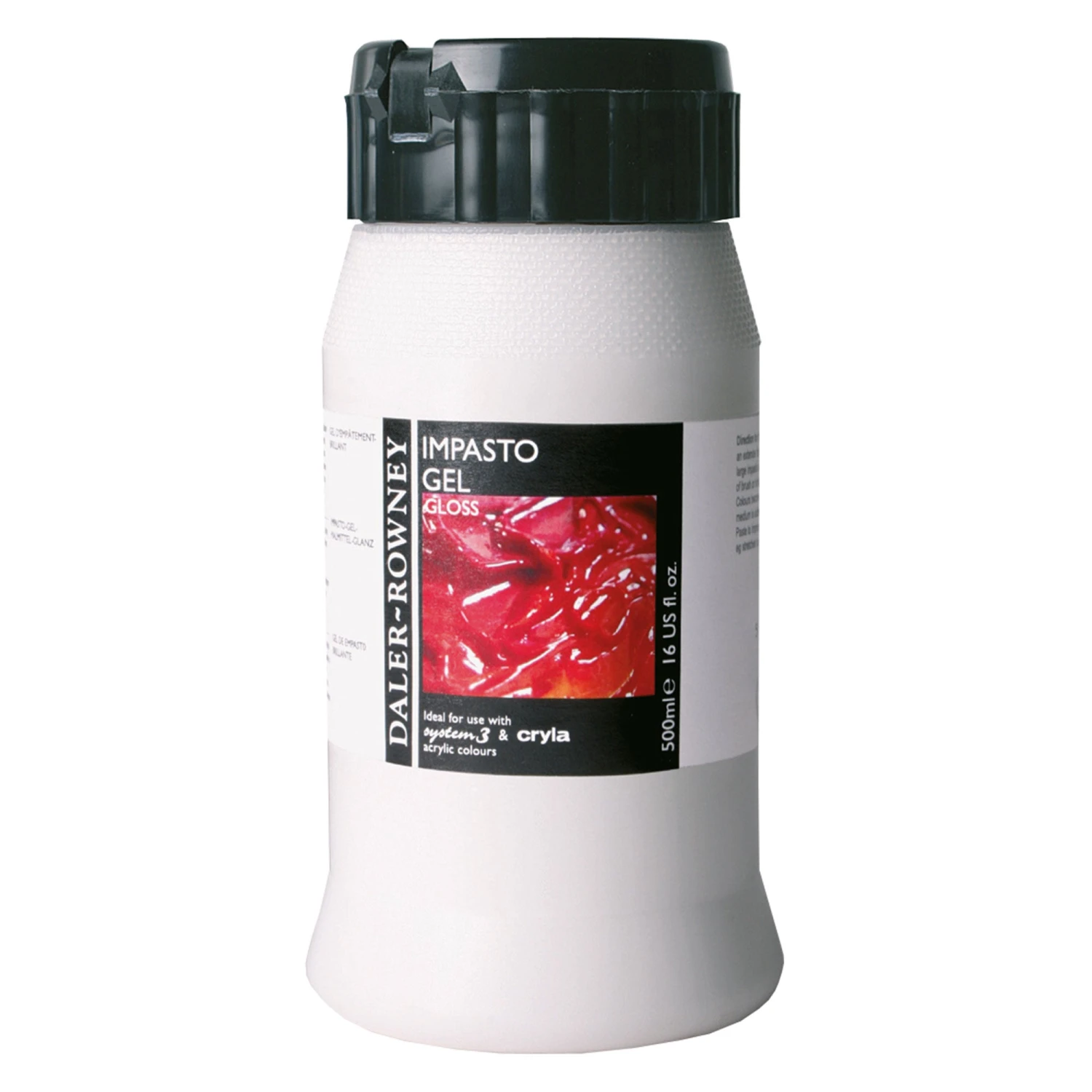 Impasto Gel Mediums are used to increase the body of your acrylic colour, which greatly improves the surface tension and mark retention of the paint. This gives you the opportunity to work with greater amounts of texture, get stiff peaks and curls on brush and knife marks and build thicker layers of colour much more easily.Â