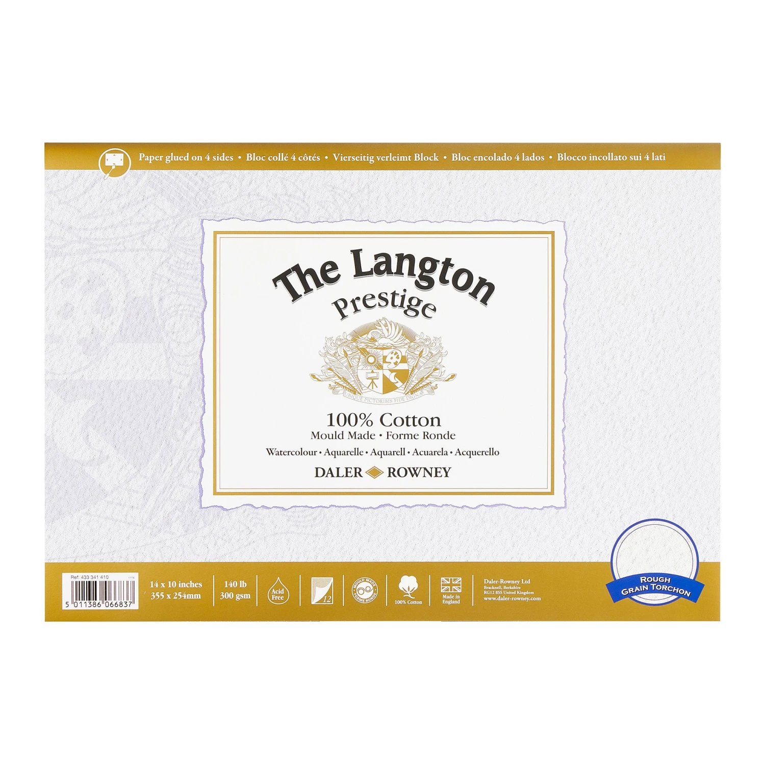 The Langton Prestige is a superior-quality watercolour paper manufactured using 100% cotton, the highest quality material for watercolour paper. Made traditionally on a cylinder mould machine, the paper features a natural whiteness with a soft touch and distinctive texture. Suitable for Professional artists and advanced students.
