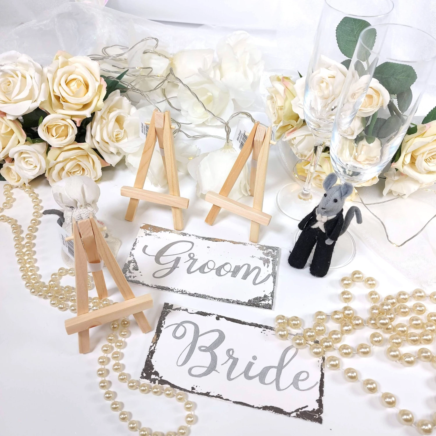 These mini easels are perfect for displaying name cards, menus, photographs, wine lists, and miniature paintings at weddings and events. They are excellent for displaying cards and merchandise for the crafter at those all important craft fairs. Also great for displaying signage.
