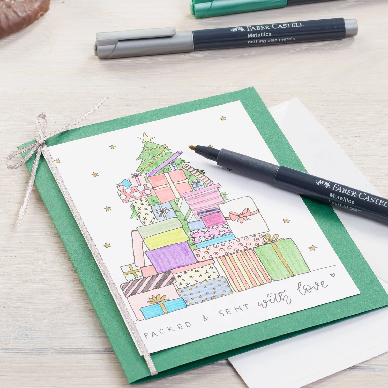 These Metallic Bullet Nib Pens from Faber-Castell feature bullet-shaped nib, which is rounded and slightly pointed, making them ideal for both writing and drawing.