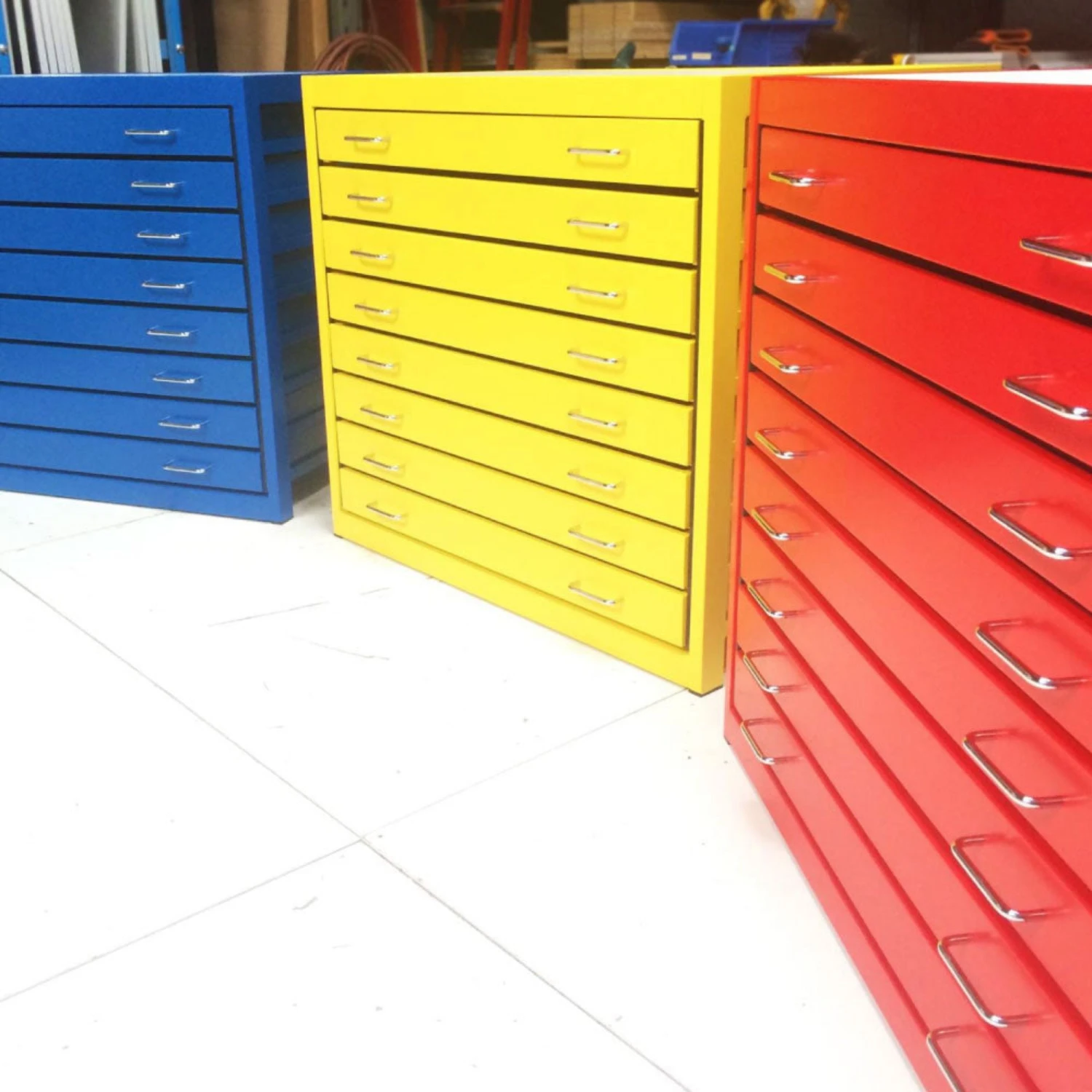 These plan chests come in standard black, white and grey (RAL 7035) colours but other RAL colour variations are possible if required. Other colours may incur an additional cost.  Please enquire here.