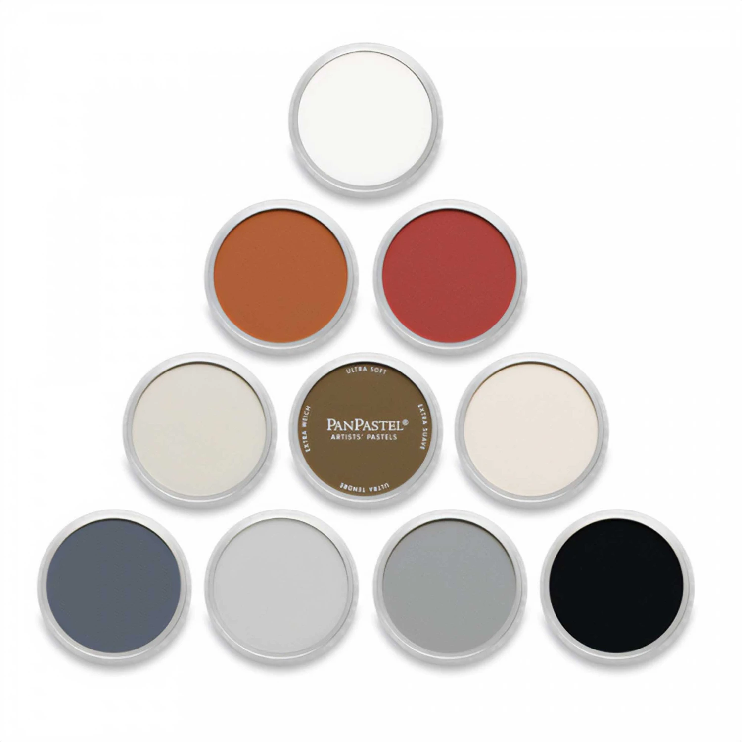 This PanPastel set contains a selection of drawing colours, including black, white, greys, and earth colours. All colours can be mixed to create intermediate colours.