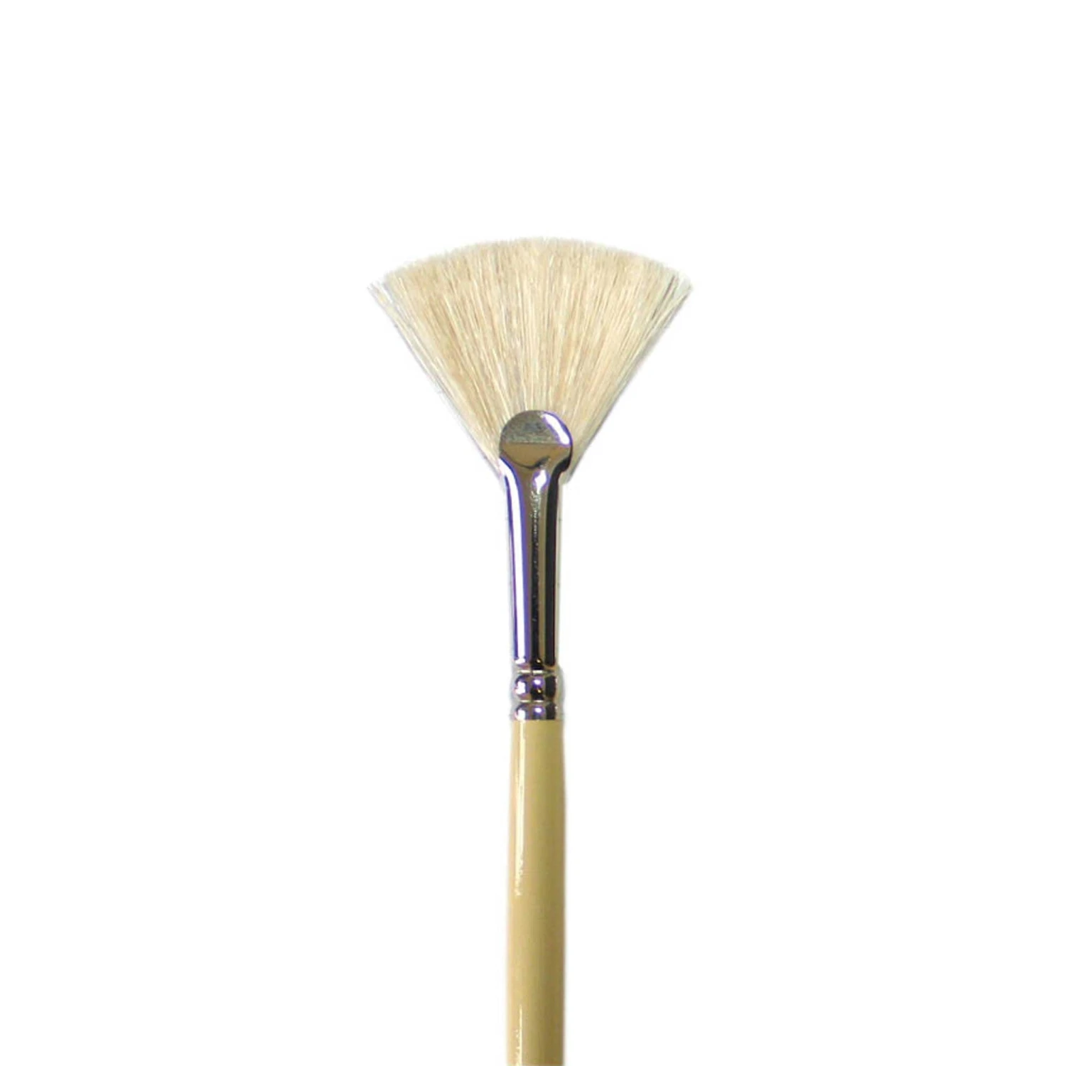 Pro Arte Series E hog fan brushes have long stiff bristles allowing for control. Their blend of hair allows for a good snap and spring, especially due to them being extremely firm and responsive to the needs of thicker oil paint. This also allows them to be very hardwearing and durable