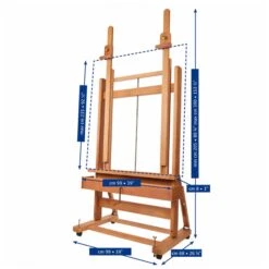 This easel is suited to both home and studio spaces, offering a reduced footprint both when in use and in storage. This is due to its rotating lower section, which can conveniently fold away. It folds to approximately 1.5m.