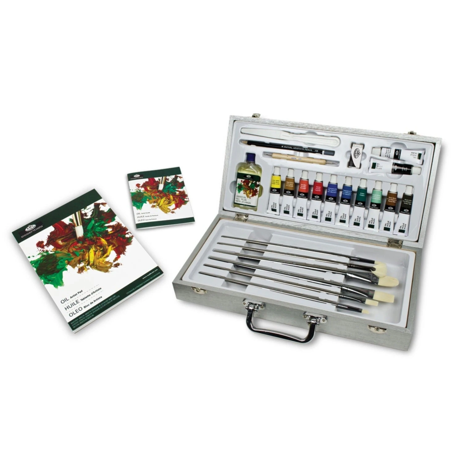 The Royal & Langnickel ‘Essentials’ Oil Art Set is a fantastic starting point for new and young artists just entering into the realm of Oil colour. It offers full spectrum of oil paint perfect for colour mixing, alongside a a full suite of equipment to get started on painting right out of the box.