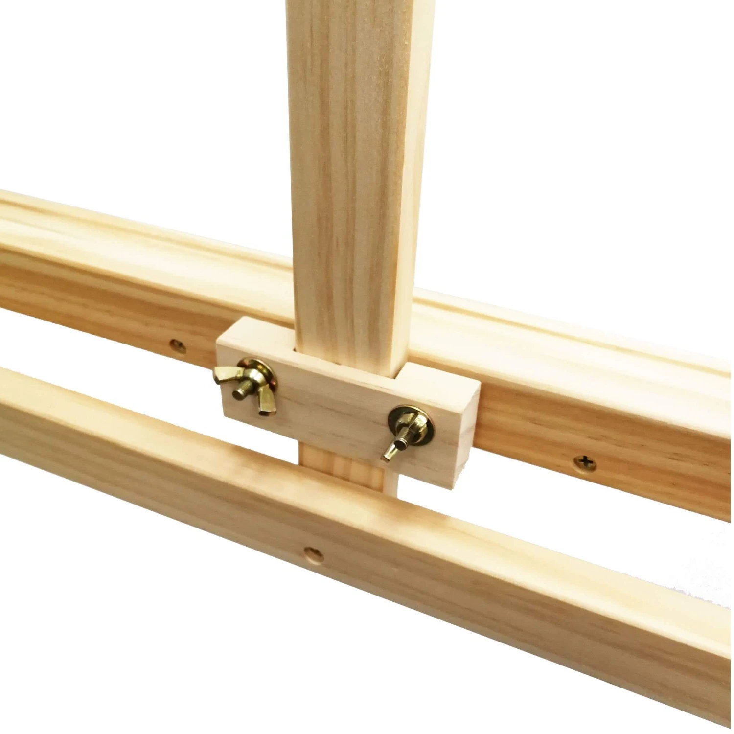 Pinewood construction with both the base bar and top clamp adjustable in seconds.Â